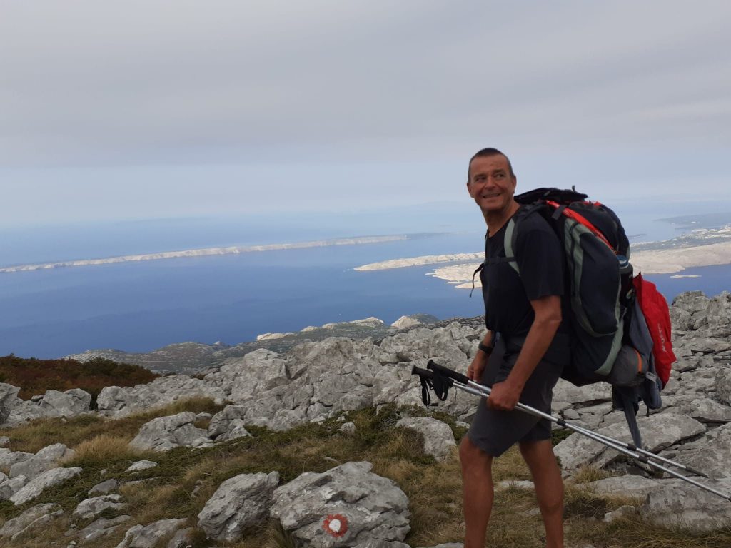 Nažalost, nema baš vremena za komod, limitirano nam je vrijeme, čeka nas “checkpoint”, ali i sati hoda do Alana, a sunce zalazi prije 7. Slijedećih sat i po je priča povremeno postajala puno oštrija, strmija, napornija, a ruksaci su počeli ozbiljno podsjećati da smo mogli manje ponijeti. Garmin mi je počeo pokazivati brojeve koje sebi nisam smio dopustiti. Na osmom kilometru sam se popeo na 150 pa 160 i na kraju do 167 otkucaja srca u minuti. Zaustavljanje, zatvorene oči, polagano i duboko disanje pa onda dugo, predugo tako dok se polako puls nije počeo spustati u prihvatljive brojeve. Doktor mi je rekao: ”nikako preko 220 minus godine”, a to je 163. Iskustvo sa Zadarskom bolnicom i osobljem mi je iskreno bilo fenomenalno, ali nikako ne bih htio priliku za jos jedan stent…Postalo je stvarno teško sve to nositi, pa je netko u pravom trenutku doviknuo: “što si mu stavio babulje u ruksak dok se odmarao”… koliko god glupo bilo, slatko sam se nasmijao.
